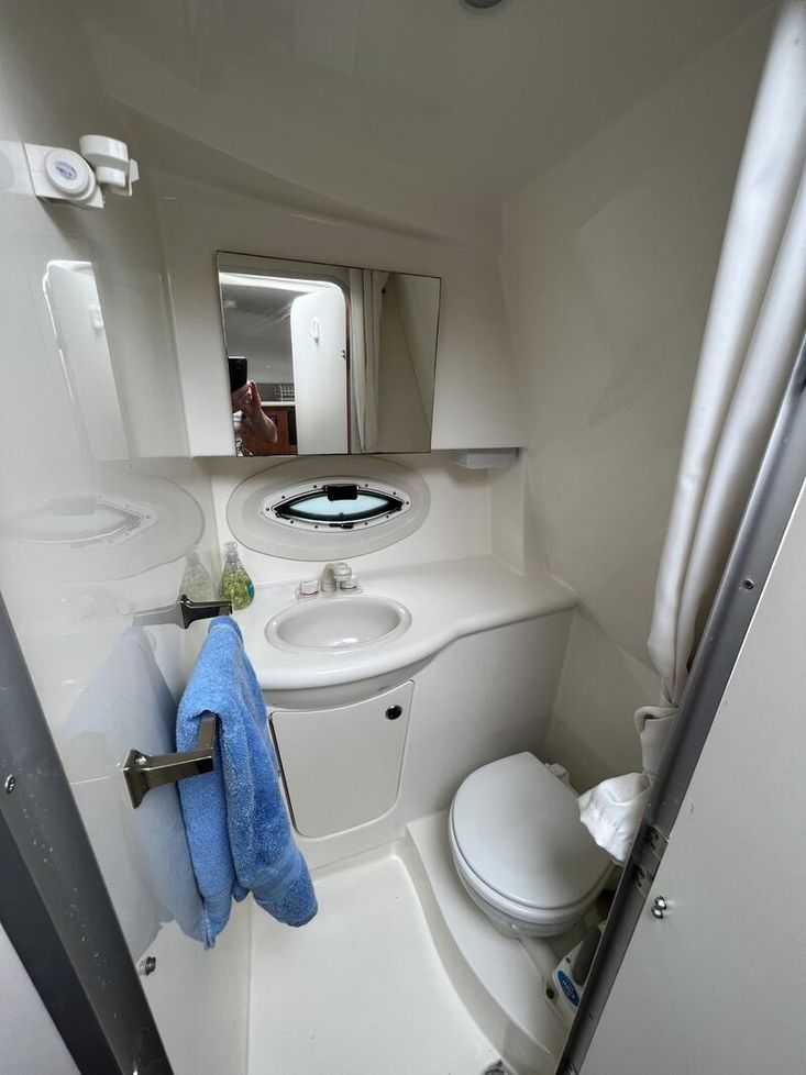 Her Bow Thruster and Electric anchor windlass makes life easy for cruising.